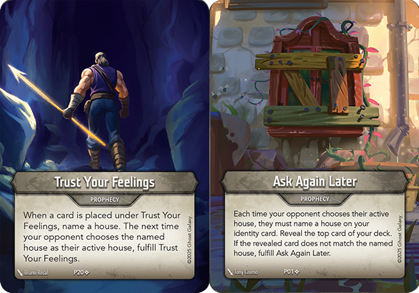 I already talked about prophecy as a mechanic above. Now I want to focus on specific prophecies—Trust Your Feeling and Ask Again Later.